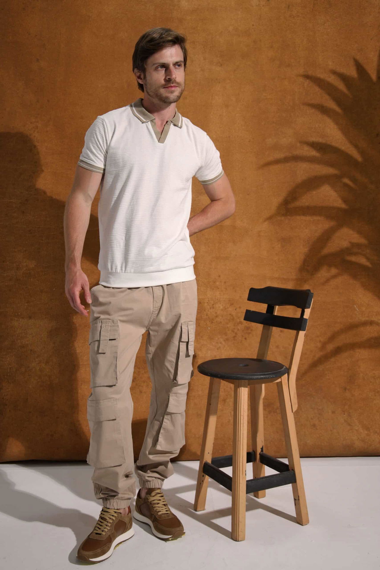 بالتأكيد، عند تنسيقه مع بنطال Chino وكاجوال نظيف، يمنحك مظهرًا متوازنًا بين الكاجوال والرسمية، مناسب للغداء مع الأصدقاء أو الاجتماعات غير الرسمية.