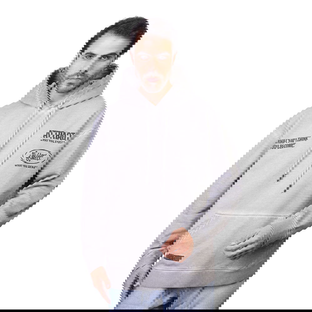 Elevate your casual wear with this street-style hoodie featuring inspiring Law of Attraction affirmations. The garment has a popular washed grey finish, giving it a soft, vintage, and lived-in look.